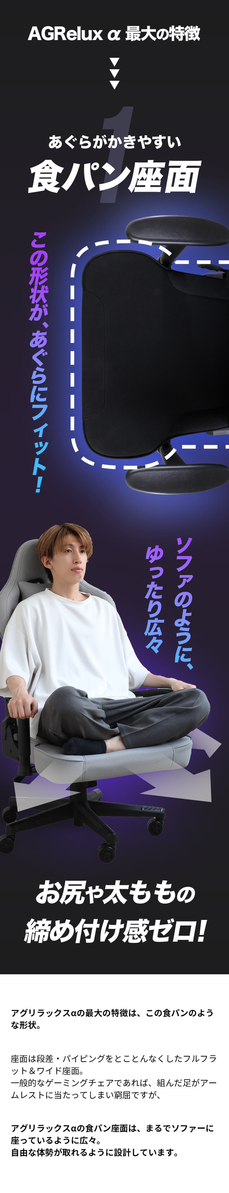 あぐらをかけるゲーミングチェア「AGRelux α Fablic」