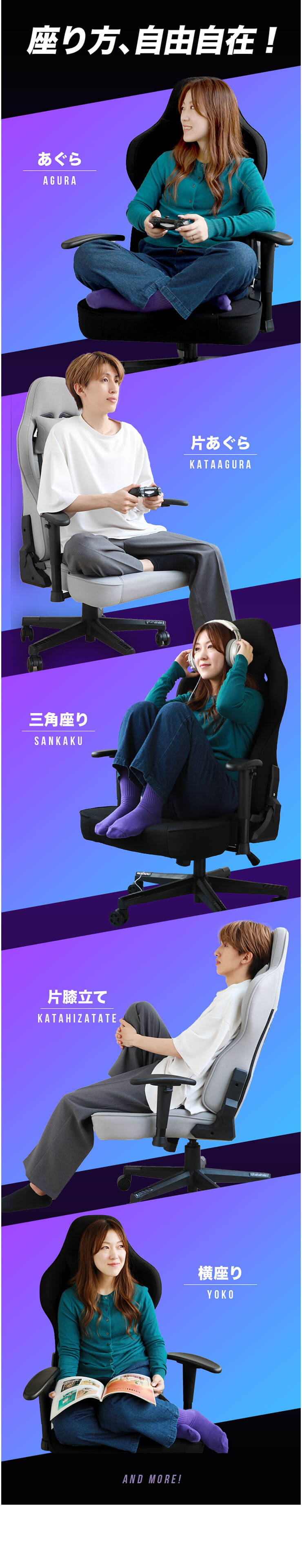 きちんと座るのはなんだか落ち着かない、そんな「あぐラー」のために開発された、あぐらをかけるゲーミングチェア。