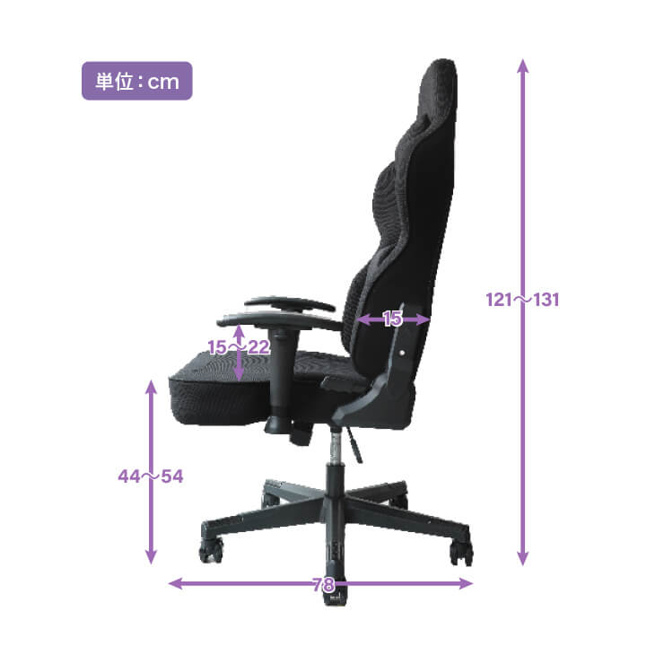 - 幅 67.5cm(67.5 ~ 77.5cm)×高さ 121cm(88 ~ 131cm)×奥行 78cm(78 ~ 126cm)