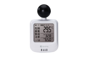 HOME > 製品情報 > 3R-BHM03 3R-BHM03 黒球式熱中症指数モニター【開発中】 黒球式熱中症指数モニタ ー は「気温」「湿度」にくわえて、日差しや地面からの熱(=輻射熱)を計測。実際に体が感しる暑さ= WBGT(暑さ指数)を正確に測ることができ、屋外・屋内問わず使用できます。JIS B 7922 : 2023 準拠、精度区分:クラス 2で厚生労働省の熱中症対策ガイドラインに準拠しています。 型番:3R-BHM03 JAN:4549462035787 参考販売価格: 4,990円 (税別) お見積依頼 お問い合わせ 製品概要 準備中です