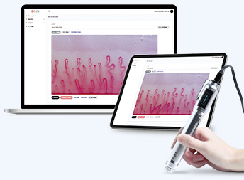観察した画像や動画を顧客ごとに保存。過去の状態と見比べることで、来店ごとの経過を確認できます。来店ごとの記録をもとに、その時々の状態に合わせた適切な提案が可能です。また、施術による変化をお客さまといっしょに確認することで、効果の実感が高まり、顧客満足度が向上。継続的な来店サイクルを形成し、リピート率アップにつなげます。