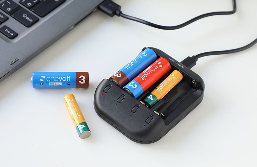 - enevolt エネボルト 2Way USB充電器 単3 単4 4本用 ブラック