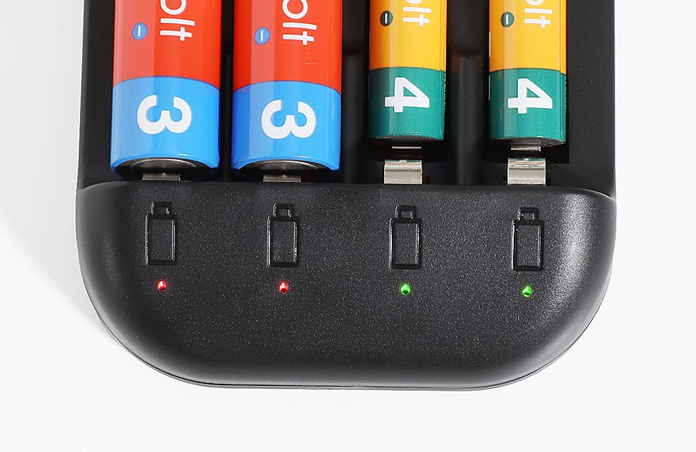 単3形も単4形も、最大4本まとめて充電