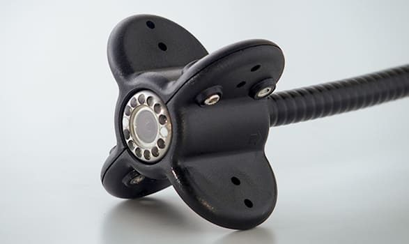 入り組んだ高所など、点検箇所に合わせて自在に角度を調整可能。曲げた状態をしっかり固定できるため、奥まった場所や死角の確認もスムーズ。 複雑な配管の裏側など、従来の直進ポールでは困難だった角度からのアプローチを可能にします。