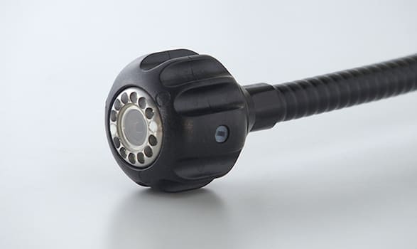 カメラ先端には12灯の白色LEDライトを搭載。モニタ側面のダイアルを回すことで、対象物の形状や周囲の環境に合わせて最適な明るさに調整することができます。