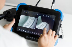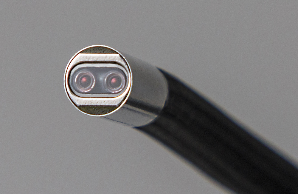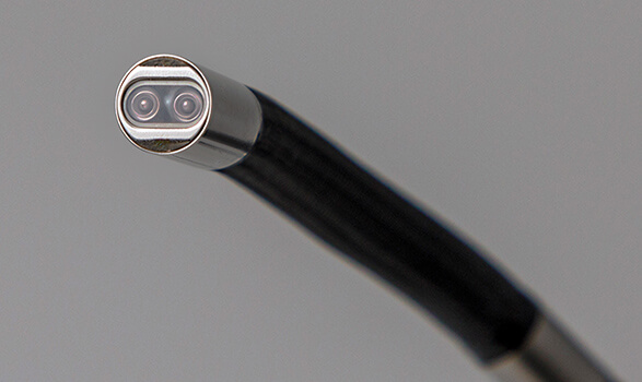 航空機ガスタービンやロケット、自動車エンジンなど、わずかな損傷が重大な事象につながる対象物の点検において、非破壊検査は欠かせません。3D工業用内視鏡は先端に搭載された二眼カメラを使い、対象物を3D化して計測。従来の平面的な検査ではわからなかったキズの深さや形状を、立体でとらえて数値化することで、これまで難しかった現場での客観的な判断が可能になります。