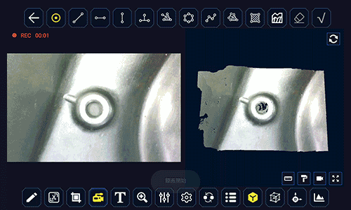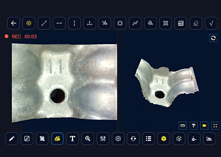3D工業用内視鏡は先端に搭載された二眼カメラを使い、対象物を3D化して計測。 従来の平面的な検査ではわからなかったキズの深さや形状を、立体でとらえて数値化することで、これまで難しかった現場での客観的な判断が可能になります。
