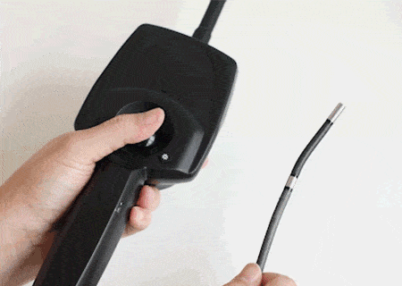 手元で直感的にコントロールできるジョイスティックでカメラを操作。複雑なエンジン内部など、目視しにくい場所でも指先の細かな動きに合わせて、カメラヘッドを正確な位置へ配置できます。