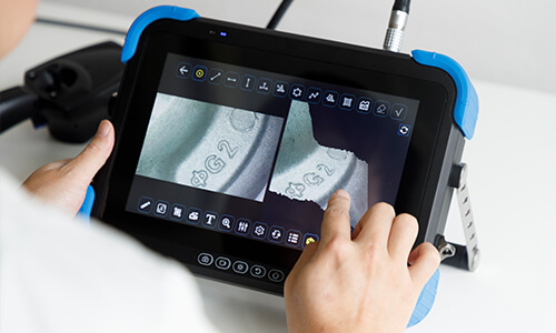 手元でコントロールできるジョイスティックで直感的にカメラ操作。複雑なエンジン内部など、目視が難しい場所でも指先の細かな動きに合わせて、カメラヘッドを正確に動かすことができます。対象物を最適な角度からとらえられるため、精度の高い計測が可能です。