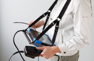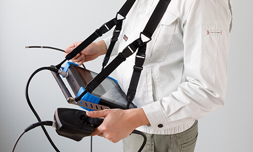 首掛けストラップを装着することで、両手を自由に使った検査をおこなうことができます。機材落下の心配もなく、安定した状態での作業が可能。長時間の点検も負担になりません。