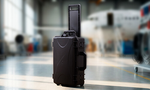 専用のハードケースを標準で付属しています。カメラ本体やモニタ、コントローラ、その他の付属品をすべてまとめて収納できるため、現場への持ち運びや保管もスムーズです。頑丈な作りで輸送時の衝撃から大切な機器を守ります。