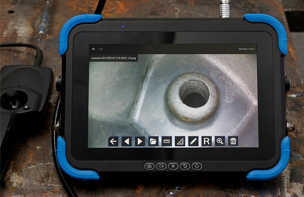 約10.1型のLCDモニターを採用。検査映像を大きく映し出すことで、現場での確認作業をスムーズにすすめられます。一人での点検はもちろん、複数人で同時に画面を見ながら状態を確かめる場面や、検査を終えた後の内容確認にも役立ちます。