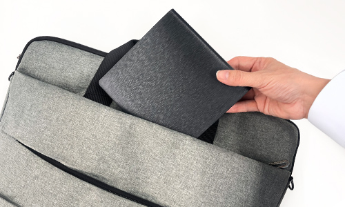 厚さ約21mmの薄型設計。カバンに入れてもかさばらない