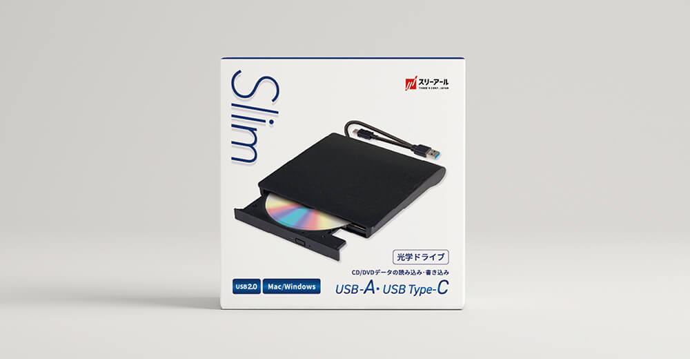 CDやDVDなど各種メディアの再生やデータ保存に。USB-AとType-Cの2つのコネクタを備えた1本2役のデュアル接続仕様の外付け光学ドライブです。変換アダプタを介さずに、最新のノートパソコンからデスクトップパソコンまでこれ1台で使えます。電源はパソコンからのUSBバスパワー駆動でコンセントは不要。本体は重さ約290g、厚さ約21mmの薄型設計で、デスクでも外出先でも場所を取りません。ドライバのインストールもいらず、Windows 11、Mac、Chrome OSに対応。パソコンに接続するだけですぐにメディアの再生や保存がはじめられます。